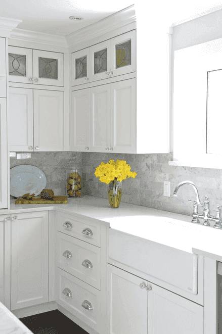 Materials used include marble and custom mosaic. Areas worked: - Entry insert - Kitchen Backsplash - Fireplace